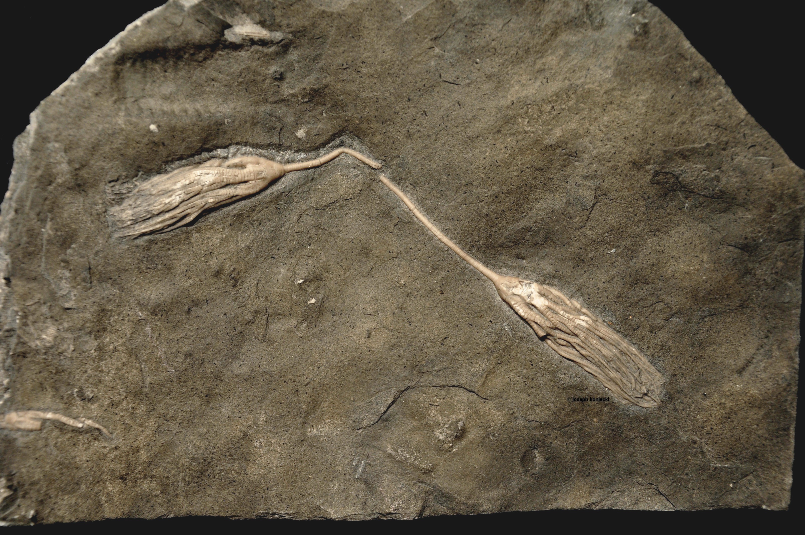 A plate with only two specimens from the same pocket of crinoids as the previous several plates.