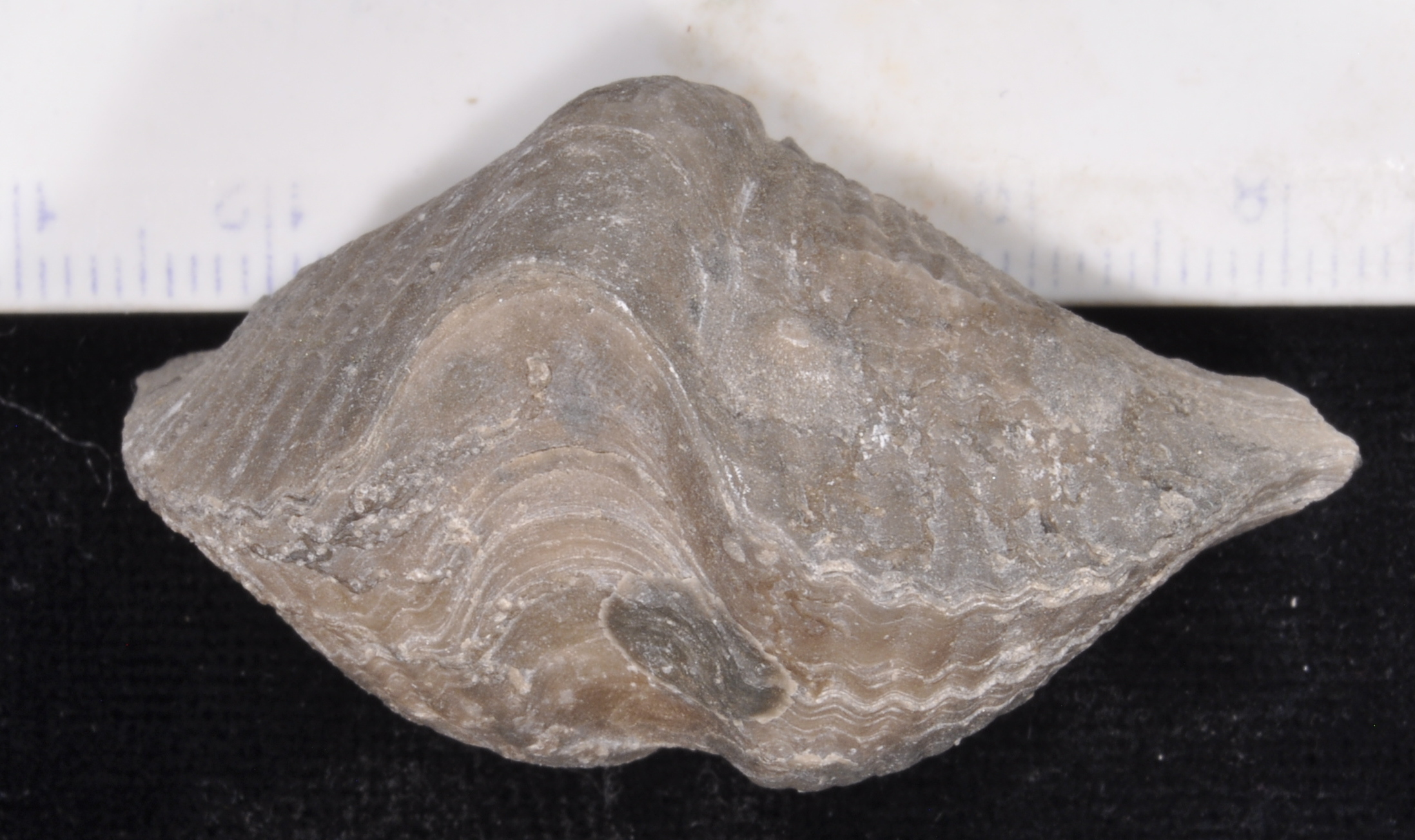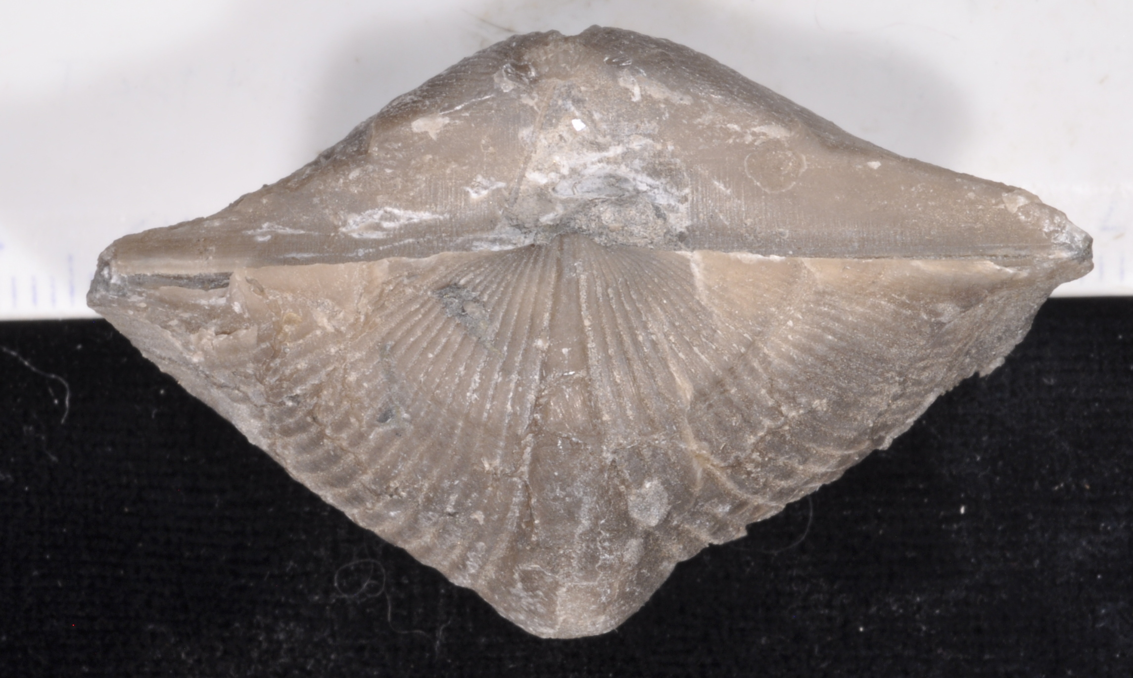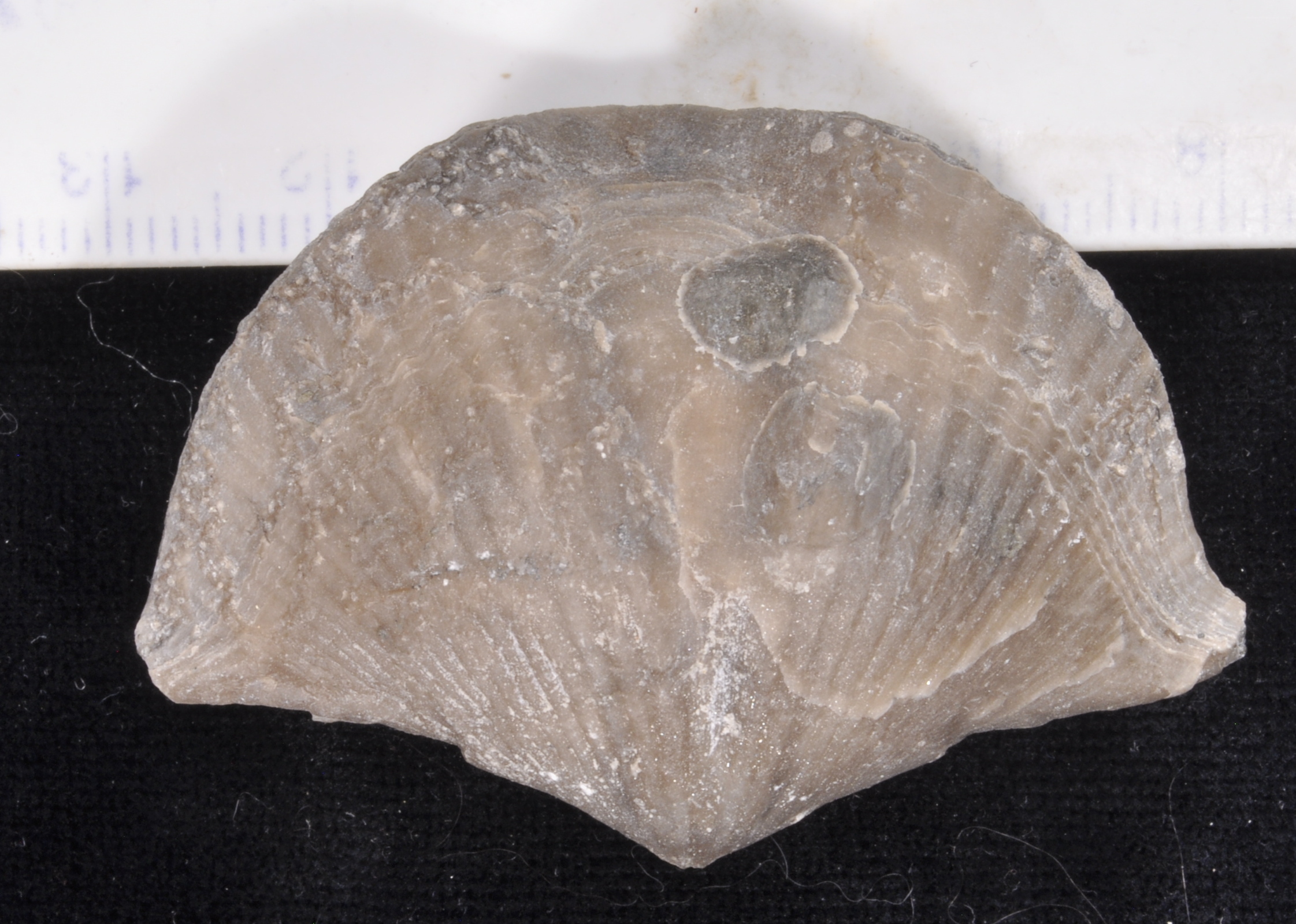 The brachiopod is about 4.9 cm across.