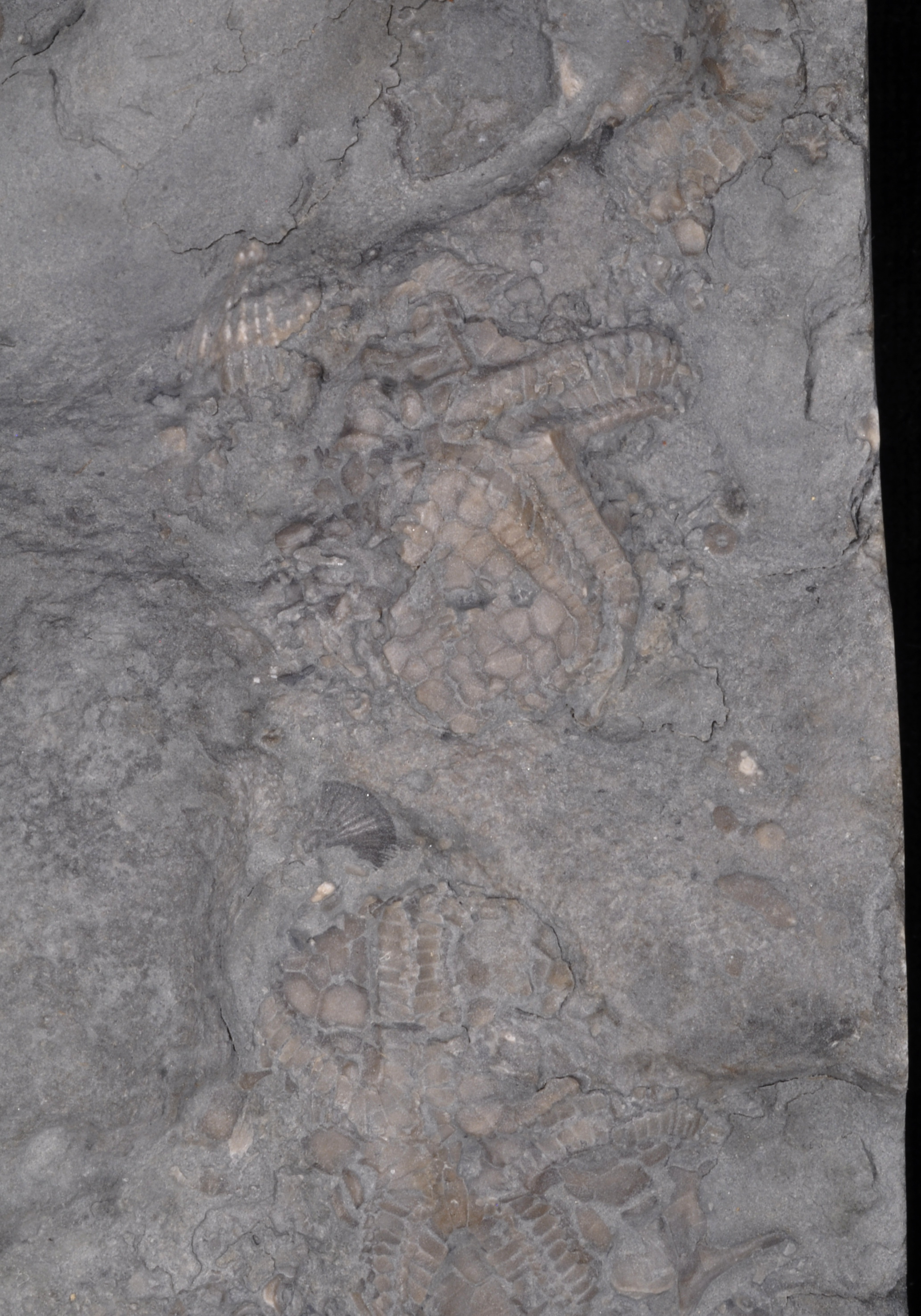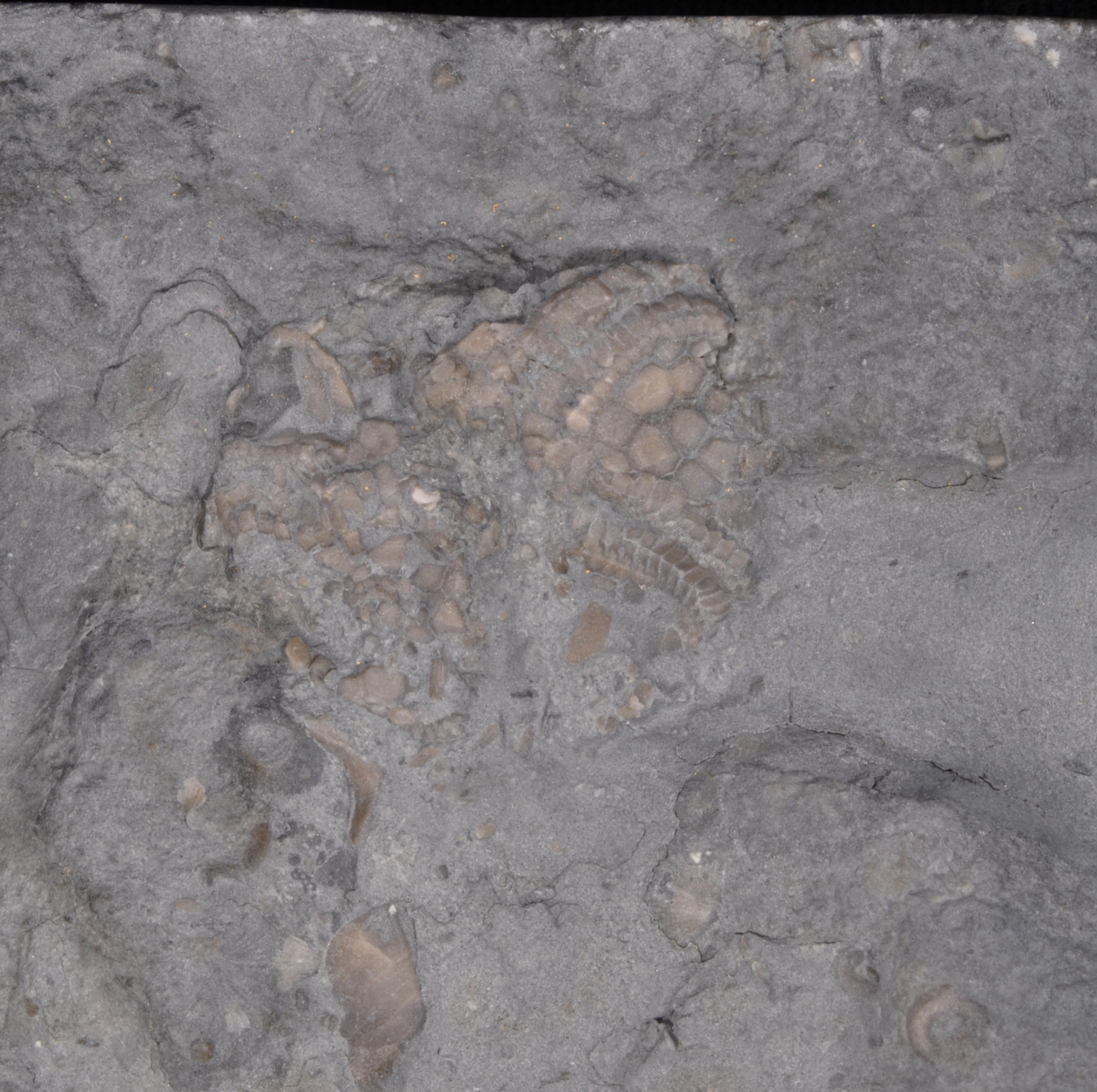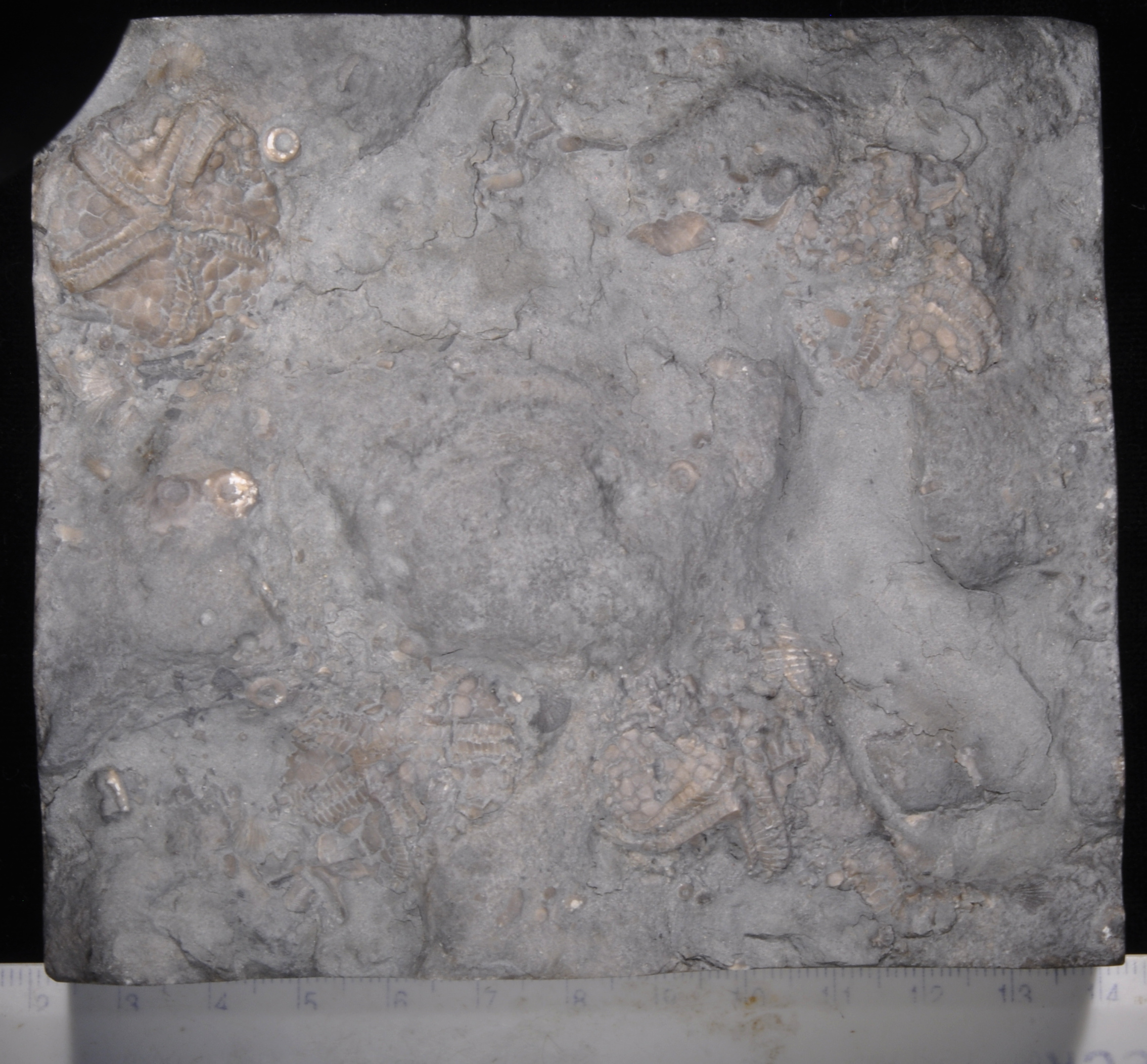 About 10 X 11 cm. slab with 4 specimens. The complete specimen is 2.7 cm.