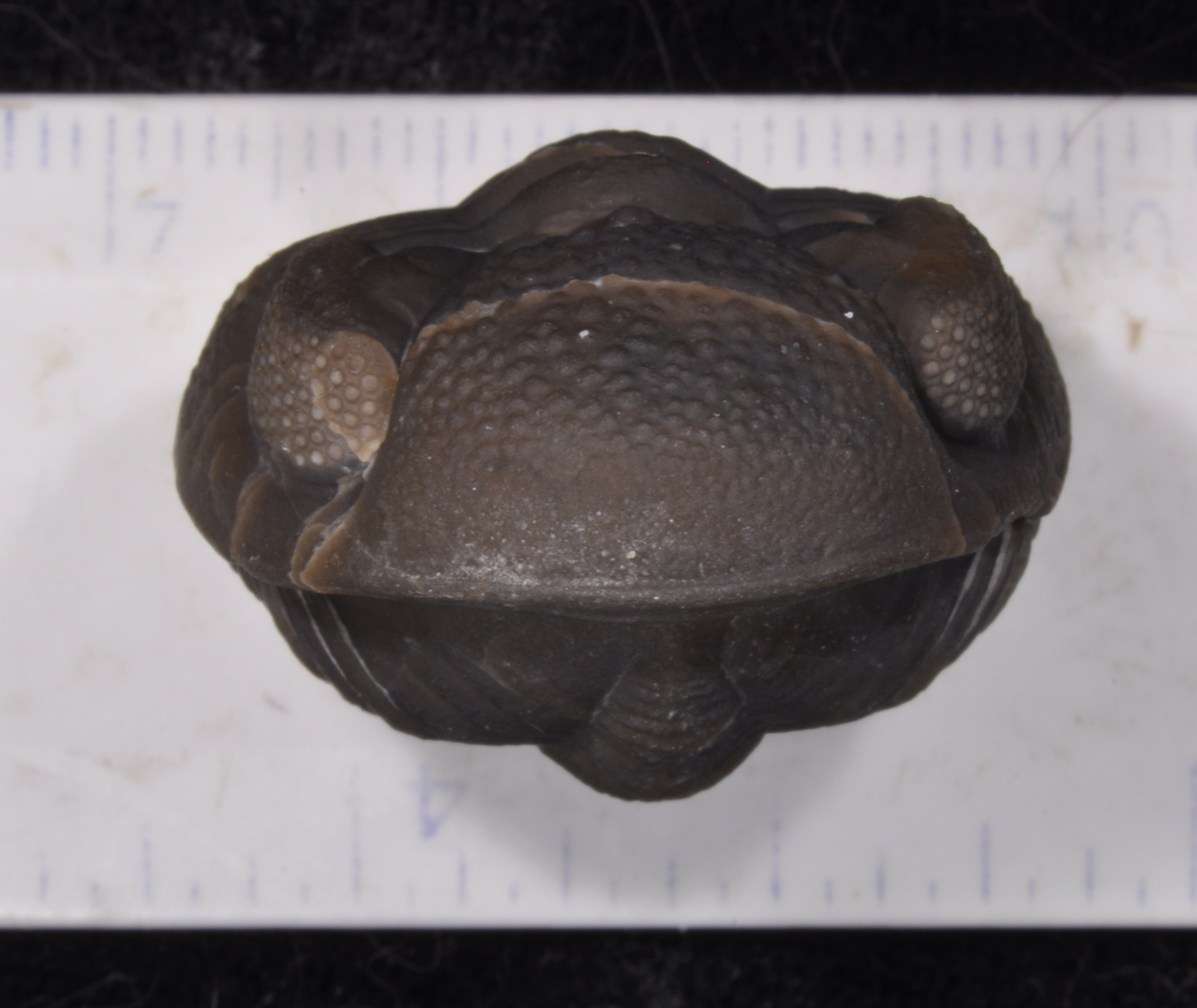 About 2 cm. across the cephalon