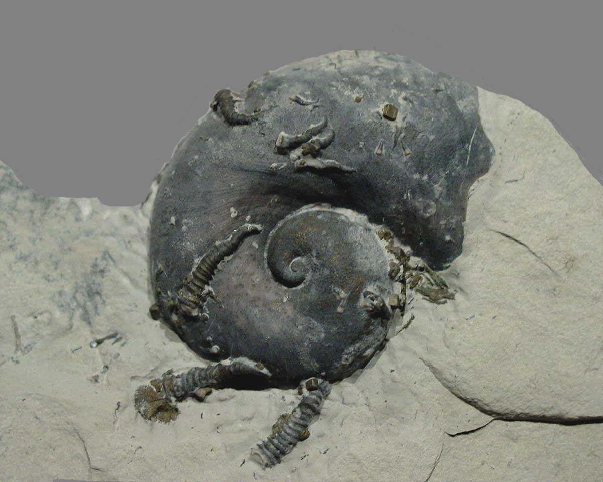 This specimen is covered with fossilized worm tubes.
