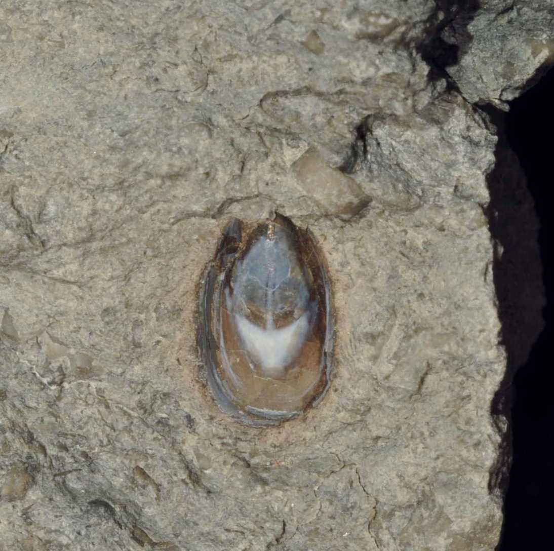 The color on this inarticulate brachiopod is natural.